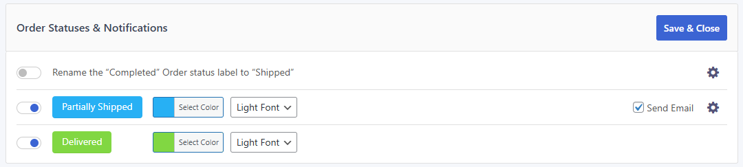 Custom Status RowsManage individual statuses like Partially Shipped and Delivered. Each row allows you to: