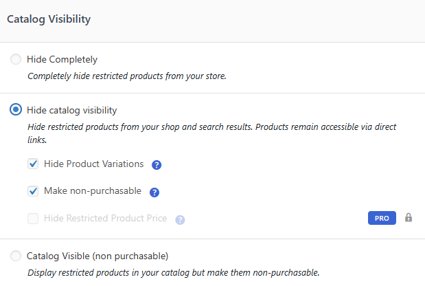 Checking this option will hide restricted products and product variations from your shop and search results, however, these products will still be accessible and purchasable via direct link.