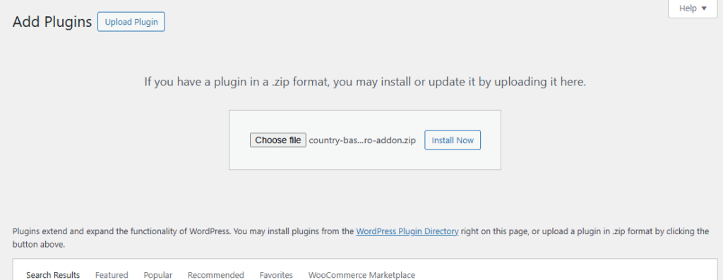 - Click Upload Plugin — at the top of the page.
