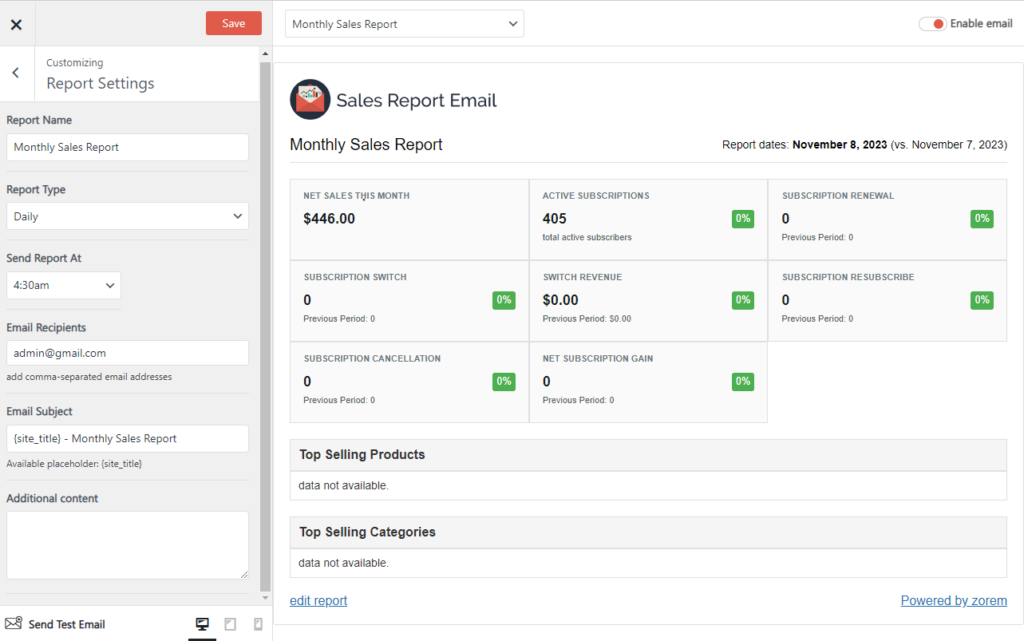 - Email Recipients – Add the email address/es of the recipients that will receive the email report(comma separated)