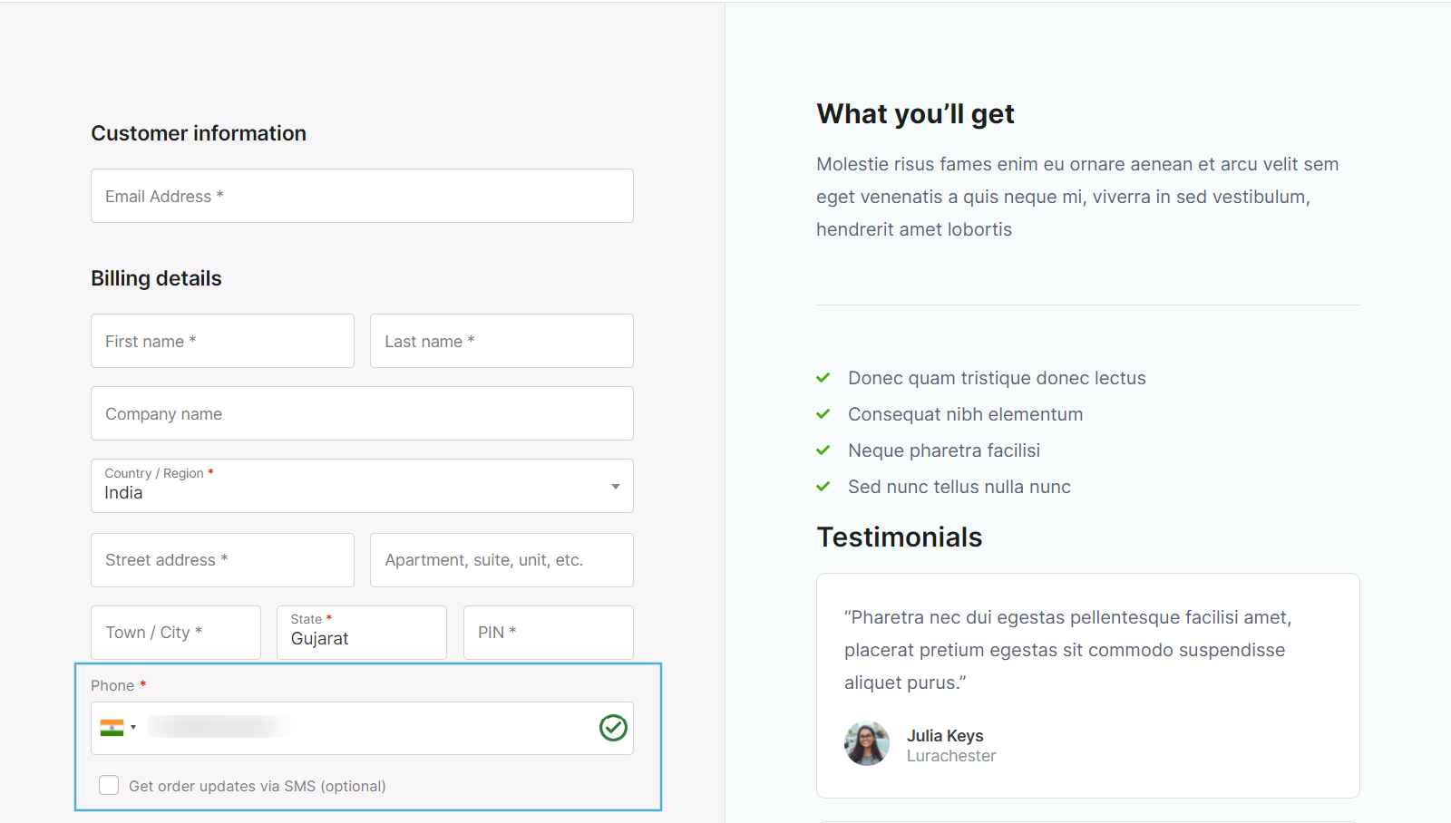 - Confirm the SMS opt-in option is shown to customers.