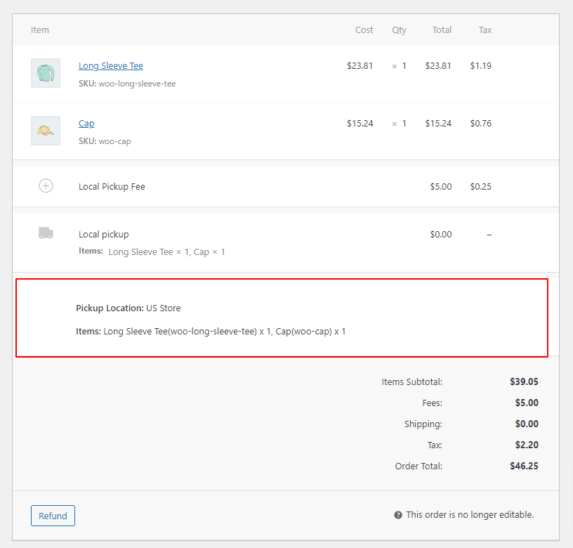 Upon the completion of your order, Pickup information will be available on the order edit page. Here, you will find pickup information content, as illustrated in the images below.
