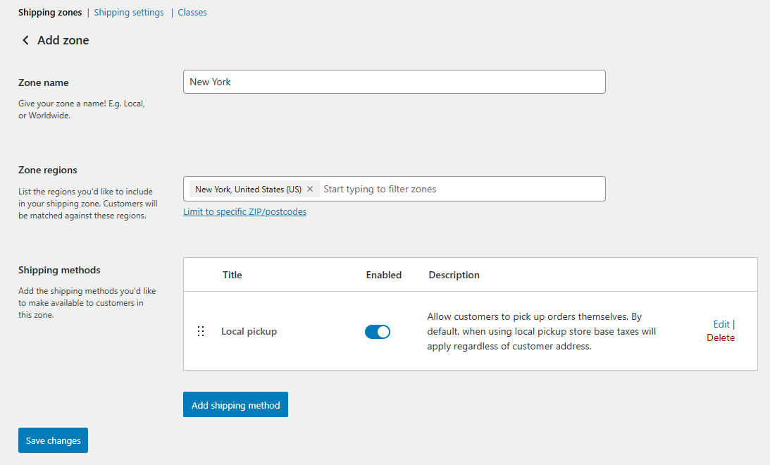 • Click Save changes. — You can set the rate as Free, or assign discounts and fees per location inside the plugin settings.