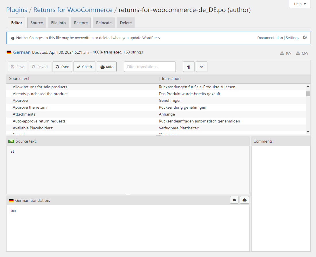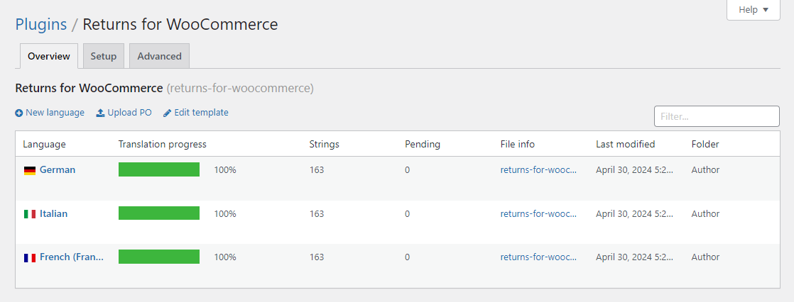 For example, if you want to translate the German language just click on edit inside the German label translate it.